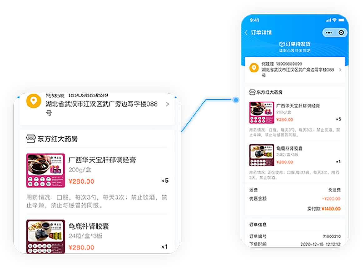 名医在线接诊,药师严审处方,在线极速购药,全程了解病情与用药情况,为患者提供一站式贴心服务。